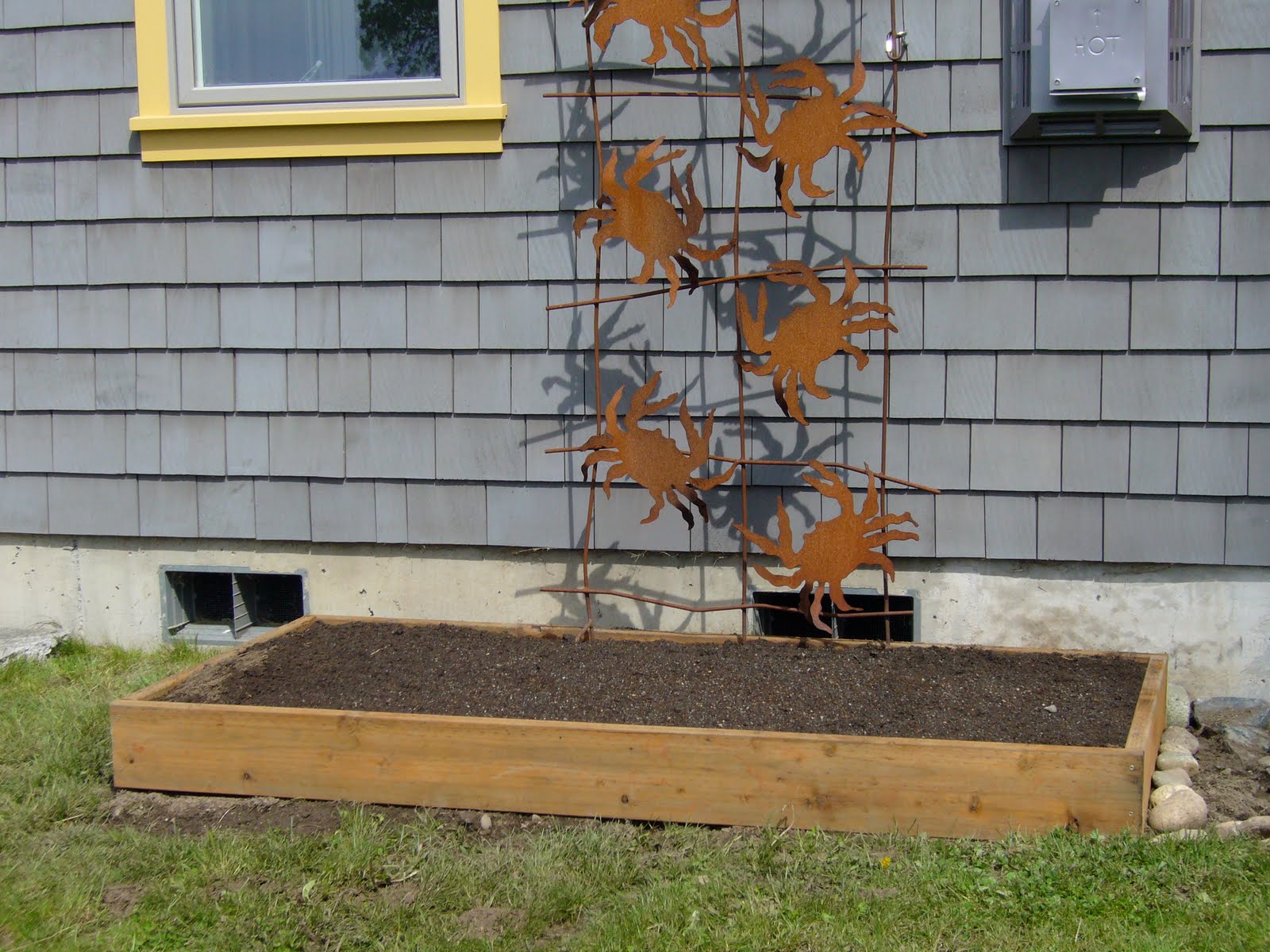 Our garden, complete with crab trellisMind you, this was the first "home improvement" project my husband and I have ever done together that happened without yelling. I wish I'd taken photos as the bed went together but oh well.