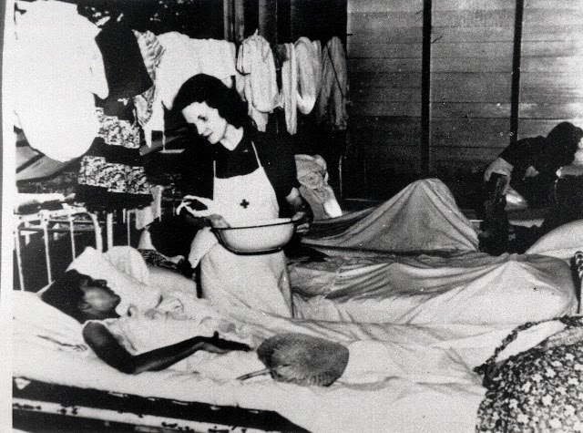 Bombs dropped from the sky. Wounded and dying men overflowed hospital beds onto the floor and the stairs outside the surgery. Within three weeks, the women were endlessly giving shots of painkiller, by flashlight, to patients on cots in the jungle, while bombs blasted close, fighter planes buzzed overhead and bullets rattled through nearby trees.