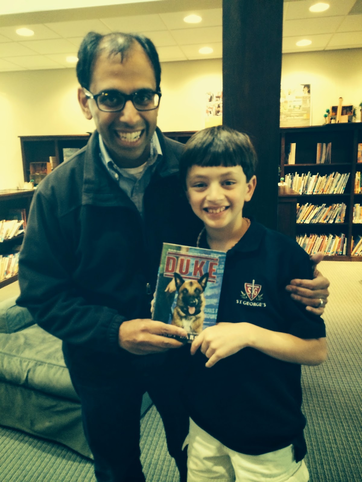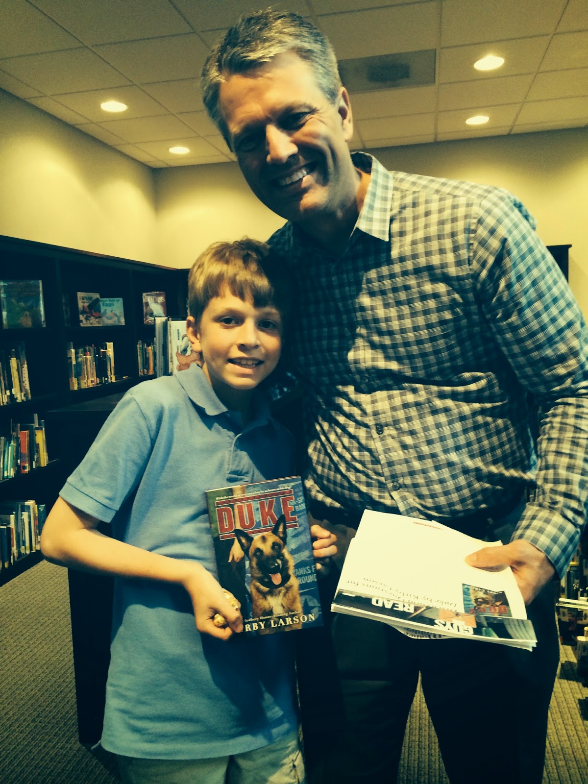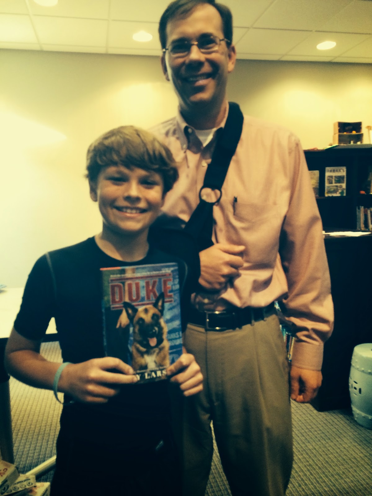 Winston and me living the dream!I’d love to come to your school! If you’re interested, please contact Michele Kophs, my event coordinator, who also has some great tips about grants to help with school visits.