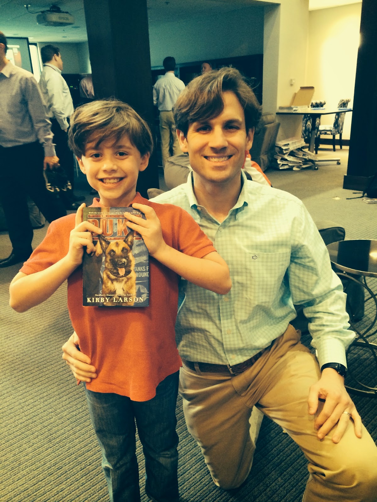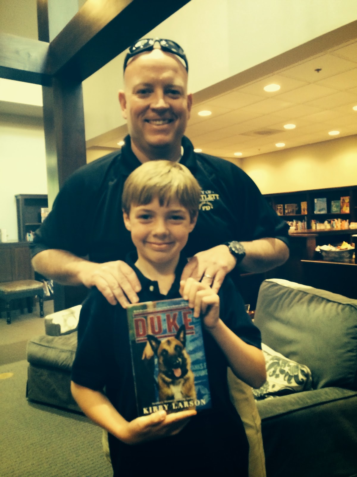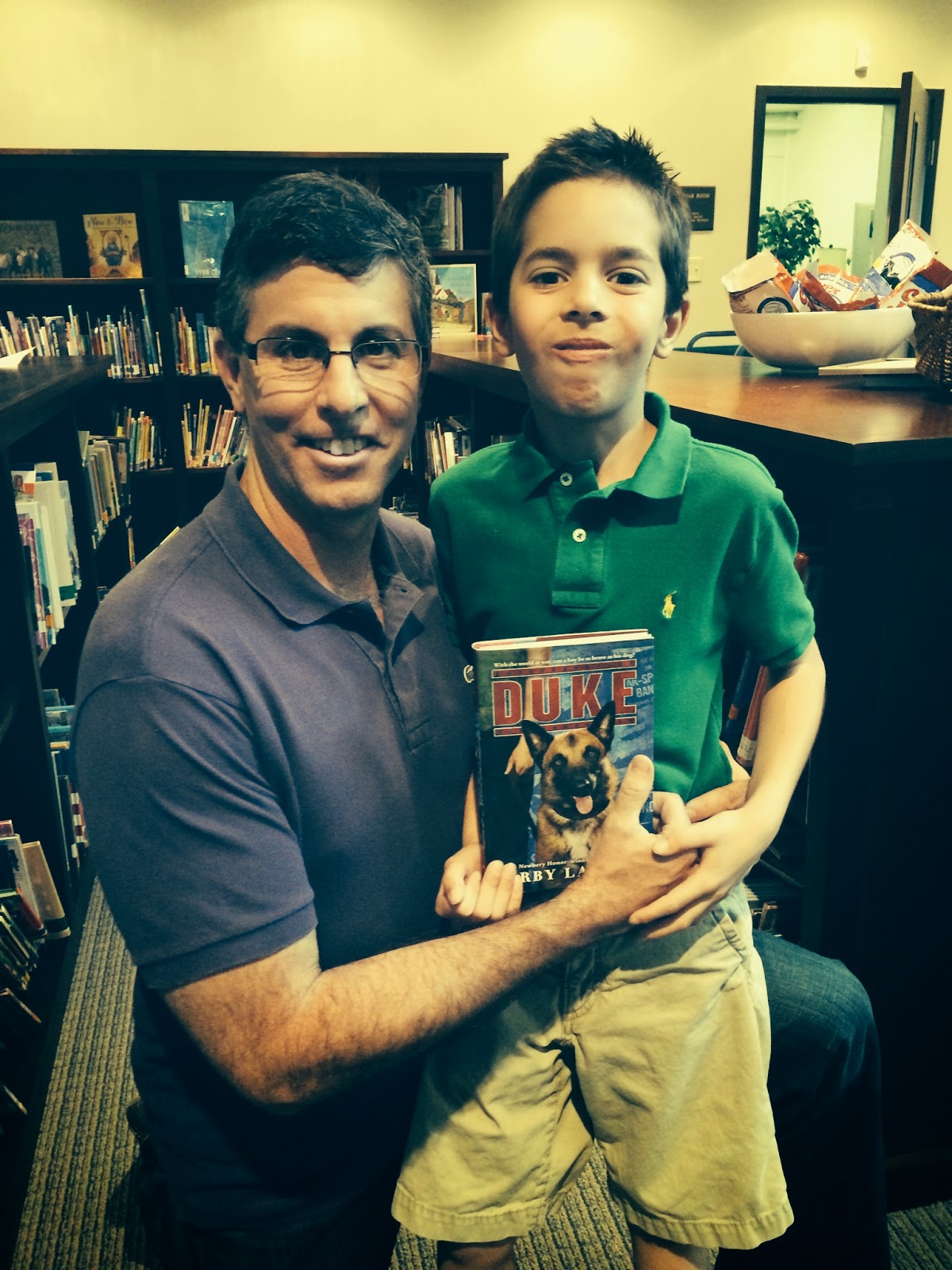 I love the way technology is making it so much easier to connect me with my readers. Video chats are one great way to make those connections and I was delighted last week to chat with a father/son book club about Duke. The boys had lots of questions for me (including asking where I got my corny jokes-- what corny jokes?!!). One dad even got brave and asked me what made me write this line of dialogue, coming from Duke's handler, Marvin Corff, in response to Hobie's question about whether Marvin's injured leg would get better: "Let me put it this way. The leg won't get better, but I'll get better at using it." I was very touched that line resonated with him, and told him it was inspired by one close family member who deals with a lot of health issues but never lets them get her down.
