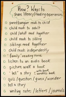 We began with this message: Your job as parents/caregivers is not to teach your child how to read (we do this at school) but instead to help encourage your child to want to read. A collective "phew" could be felt in the room. Once the pressure to improve their child's reading skills was off the table, parents were able to hear me when I explained that their role was to help create access to books (big cheers for school and public libraries), to make time in daily routines, to be a model (let them see you reading) and to be an active participant.