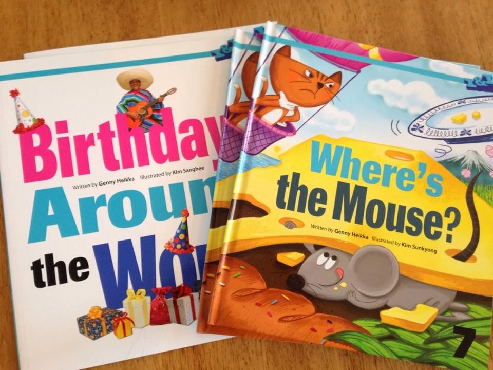 I wrote both of these picture books--Where's the Mouse? and Birthdays Around the World--for Tun Tun, a publisher in Korea that creates books to help children learn English as a second language. Both books were work-for-hire assignments and were rewarding projects to work on. Where's the Mouse? was written not only to help Korean children learn to speak English, but also to help them with geography. In the story, the main character (a mouse) travels to different countries eating cheese and avoiding capture, only to end up in a bakery, eating cheesecake.