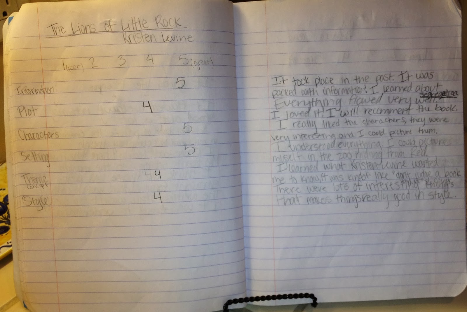 On completing the book club cycle, each student votes for his or her favorite book. This step allows students to honor their personal favorite, and then set that aside as we continue a deeper analysis of the books using the Newbery criteria. Students set up an evaluation grid in their WRN (Writer’s Reader’s Notebook) for each book read. As we focus on one criterion at a time, students rate each book for that specific criterion and give a brief explanation of the rating. Once all criteria are completed, each student decides which title should win the Newbery Award and completes a written assignment defending this choice using the Newbery criteria as the lens to judge the book.