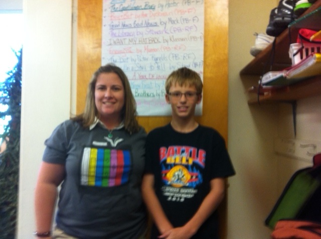 Mrs. Sokolowski and uber reader, Matt!Matt – what is your favorite book this year? Well, Earthling by Mark Fearing.