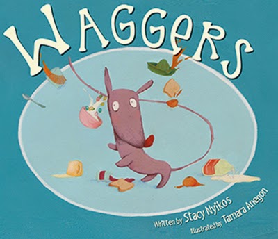 Stacy NyikosMy latest book, Waggers (2 December 2014, Sky Pony Press), is about a newly adopted puppy who tries REALLY hard to be good, but his tail get in the way.