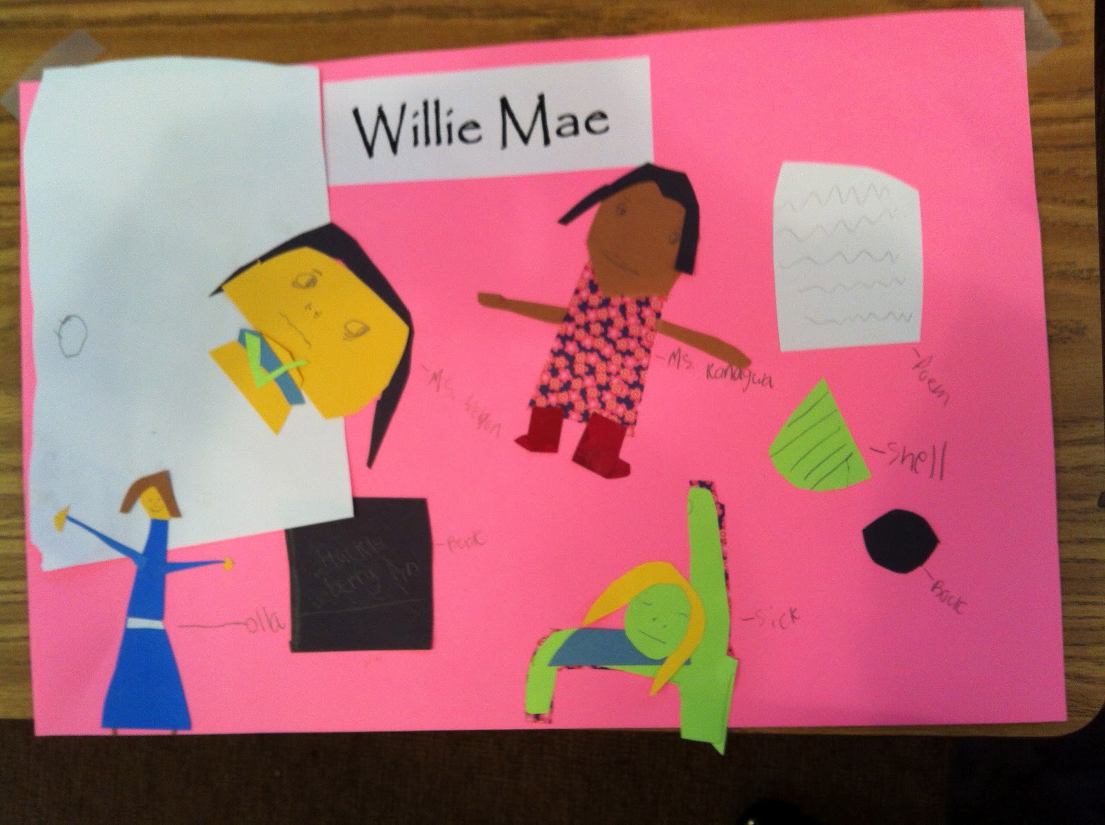 A week ago today, I spent a wonderful afternoon on Shaw Island with three schools' full of kids -- fewer than forty children! Each of these schools is nestled on a charming island in the San Juans, but gather several times a year. This time, we talked reading at writing at the Shaw Island school, the oldest school in continuous operation in Washington state! Everyone was bubbling with questions and comments and the time passed much too quickly. I wish I'd remembered to take more photos but at least I got snaps of these delightful posters representing the four girl characters in The Friendship Doll.