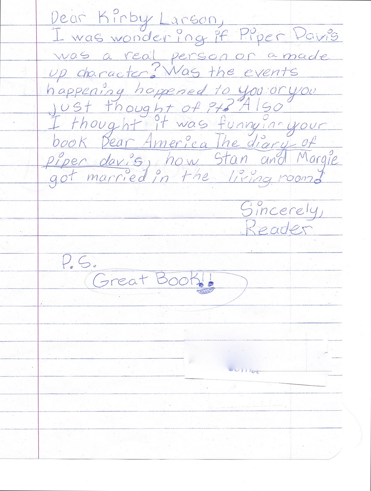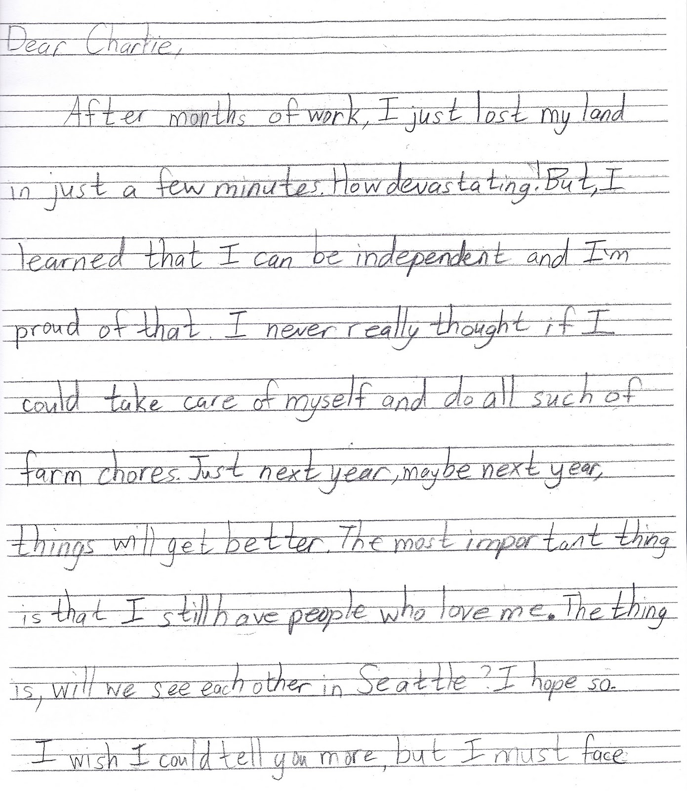 I love the spunk and hope and out-and-out charm of this letter, written by a student as if she were Hattie writing Charlie.