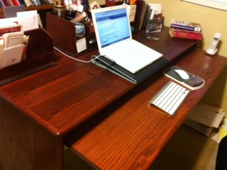 Dust, junk and computer not includedSo, if you live in the Seattle area and are in need of a 5' long desk,* with 5' long keyboard platform, shoot me an email. Added bonus: this is the desk at which I wrote the Newbery Honor book, Hattie Big Sky. Who knows? It could bring you some writing luck, too!