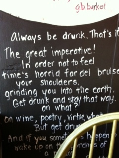Found this poem, by Charles Baudelaire, written on the wall of a Carson City coffee shop (you can find the rest of the poem at sites like this).