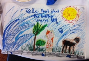 This kid designed placemat says, "Is that what the Bobbies deserved? No!"