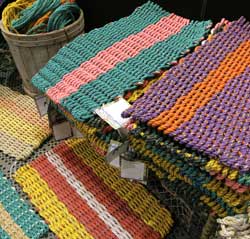 Do you need a new front door mat? Check these out -- they are made from old Maine lobster fishers' float ropes (the fishing industry is required to use a new kind of rope that is less harmful to sealife that might get tangled up in it). What a cool idea--keep your floors neat and save a whale! I ordered a pair for Shangri-Lar. I'll post a photo when they arrive.