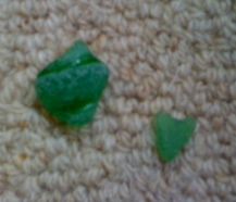 Even though the coffee maker was cantankerous this morning, it's always a good day here at Shangri-Lar. Look at these two pieces of cool beach glass I found this morning!