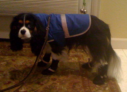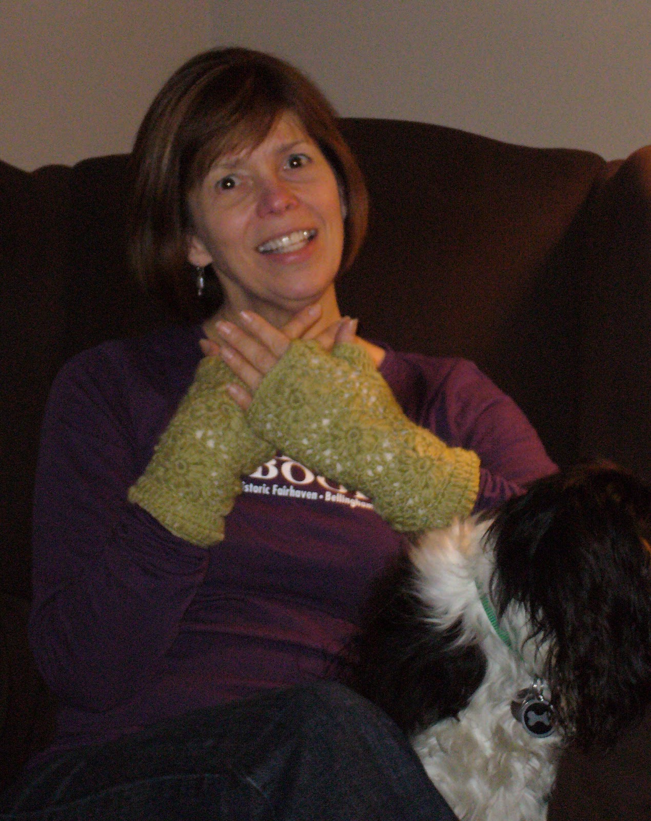When I arrived home this evening, I found a belated Christmas present from my dear friend Mary. When she was here in October, I mentioned that I would like a pair of fingerless gloves for walking Winston. Kind soul that she is, she remembered and ordered me a darling pair. . .which were backordered and arrived today. Perfect timing for our cold weather!
