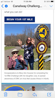 I hope our story encourages you to register a Challenge with Erie Canalway National Heritage Corridor. My mom, Mary Ann Avazian, took the One-Mile Challenge with me pushing her in her wheelchair, but she still got recognized!