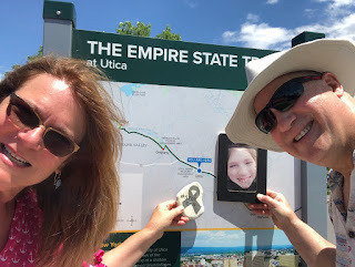 The Empire State Trail map has good descriptions of the Trail broken up into digestible segments, including the recently completed 15-mile portion through Syracuse, near our home. When we learned about the new Trail a few winters ago, we strapped on ice cleats, grabbed our walking sticks, and trekked through the snow and ice from Reed Webster Park, Camillus, through downtown Syracuse, then to Old Erie Canal State Historic Park, DeWitt. Along the way, we found the ruins of Lock 50, known as Gere's Lock; the New York State Fair Grounds and Crucible Steel, where we heard loud mechanical thumping reminiscent of the Morlocks in the “Time Machine”; watched bald eagles feeding at Onondaga Lake; saw the largest shopping mall in the state, Destiny USA; learned Syracuse's salt mining industry from signs lining the connected Onondaga Creekwalk; watched ice skaters at Clinton Square and looked down on carefully preserved Old Erie Canal ruins nearby; headed to the Erie Canal Museum, housed in the only surviving Weighlock building (which I consider an Erie Canal "Wonder"); strolled directly down the center of busy Erie Boulevard, once the Erie Canal itself, trying to imagine barges floating by the dollar stores; then onto Towpath Road alongside the Old Erie Canal, over the highway (481) with its dramatic overhead view of Butternut Creek Aqueduct ruins in DeWitt. From there, the Trail heads to Rome--where construction began on the Erie Canal over 200 years ago on July 4, 1817.