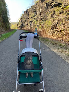 Jim and I like to sit every couple of miles and have found it's best if we carry our own seats since we can't always depend on finding one. Jim wears a backpack that turns into a stool (from Dick's Sporting Goods) and I bought a light folding stool at a garage sale that clips to my knapsack.