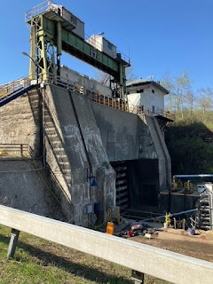 One question posed to me included what we’ve seen along the way:"Was a lot of your trek on the trail with direct views to the canal or on the road?" So far, we have mostly walked along the modern or old canal, so yes, we see a lot of flowing river or stagnant, Old Erie Canalwater withducks, turtles, blue herons, and an occasional old tire thrown in. Some of the Trail is on the roadand not an old tow path, so we also experience trucks whizzing by. The Empire State Trail map has good descriptions of the Trail brokenup into digestible segments including the recentlycompleted 15-mile portion through through Syracuse, near our home. Since we walk throughout the winter, we strapped on ice cleats, grabbed our walking sticks, and trekkedthrough the snow and ice over several days from Reed Webster Park, Camillus, through downtown Syracuse, then to Old Erie Canal State Historic Park, DeWitt. Along the way, we found the ruins of Lock 50, known as Gere's Lock; past the New York State Fair Grounds and Crucible Steel where we heard strange, loud mechanical thumping reminicient of the Morlocks in the “Time Machine”; watched bald eagles feeding at Onondaga Lake; sawthe largest shopping mall in the state, Destiny USA; learned about Syracuse's salt mining industry from signs lining the connected Onondaga Creekwalk; watched ice skaters at Clinton Square, where remains of the Old Erie Canal can still be seen; headed to the Erie Canal Museum, housed in the only surviving Weighlock building (which I consider an Erie Canal"Wonder"); strolled directly down the center of Erie Boulevard, once the Erie Canal itself, trying to imagine barges floating by the dollar stores; then onto Towpath Road alongside the Old Erie Canal, over the highway (481) with anawesome overhead view of the Butternut Creek Aqueduct ruins in DeWitt. From there, the Trail heads to Rome--where construction began on the Erie Canal over 200 years ago on July 4, 1817.