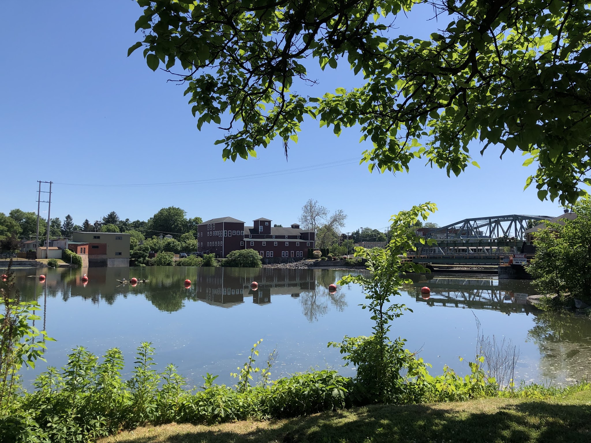 Here is the metal drop gate down in the water. It's usually high in the air and rusty looking on the side coming from the Buffalo direction.