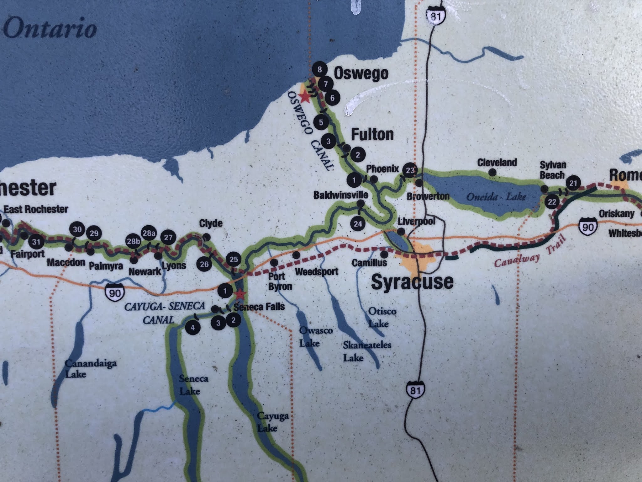 P.S.S. As of March 26, 2021, we have walked 40 miles of the trail form Port Byron to Green Lakes Park. These four maps below, #14,, 15, 16 and some of 17, show the route we've walked so far, or you can check https://empiretrail.ny.gov/map14Erie Canalway Trail (20 miles)Port Byron to Camillus15Empire State Trail (9 miles)Camillus to Syracuse16Empire State Trail (6 miles)Syracuse to Dewitt17Erie Canalway Trail (did about 5 of this 10 mile stretch)DeWitt to Chittenango