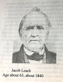 "Jacob Leach came to Lyons from Litchfield, Conn., in 1809, and operated a distillery on the north side of Ganargwa Creek until the site was wanted for the Erie Canal in 1824. He then became a merchant with Joseph M. Demmon on Water street. He was a canal contractor, and erected a mill on the Ganargwa that was burned and rebuilt in 1837. He was a justice of the peace several years, member of Assembly in 1823, and at one time president of the old Lyons Bank with Thaddeus W. Patchen as cashier. He had ten children, and died in 1853, aged seventy-five years." (History of the Town of Lyons, 1895)