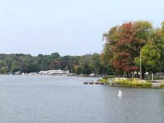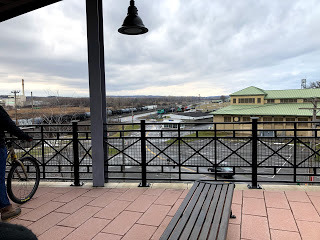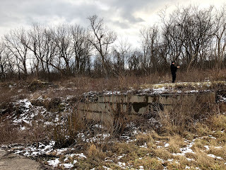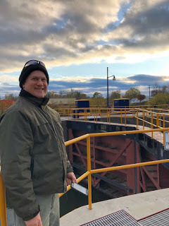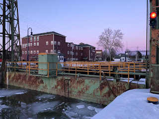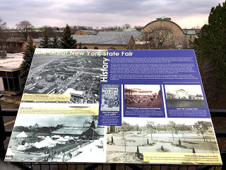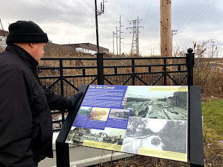 Along the way from Gere's Lock to the Syracuse Weighlock, the path ran beside Crucible Steel, New York State Fair Grounds and Onondago Lake to its southern end.We crossed over train tracks on a pedestrian bridge from where we saw bald eaglesperched beside its ice-free edge--made so by warm water pumped from a plant around the bend.