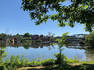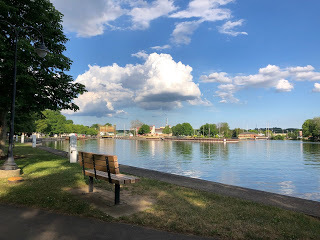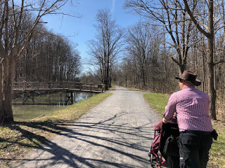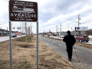 My husband and I just finished walking the newly connected and constructed Empire State Trail from Camillus to Syracuse and Syracuse to DeWitt, a total of "15 miles on the Erie Canal." We walk small segments of the Trail at a time as we tackle the 360-mile Erie Canalway Challenge between Buffalo and Albany. Still in our first year taking the Challenge, I wonder if we will ever finish--but at least this new section of Trail made finding bathrooms much easier! Plus, I learned a lot about Syracuse and the Erie Canal through the signage along the way. We commenced our Erie Canalway Challenge on April 21, 2020, at the Camillus Erie Canal Park where we found the first "Wonder" of the Erie Canal (I'm searching for "7 Wonders")—the Nine Mile Creek Aqueduct, the waterway bridge for conveying barges over the creek. According to the Park, it is "the only restored navigable Aqueduct in New York State."