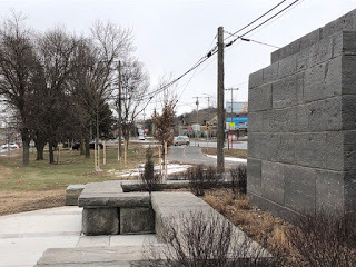 Stone engraved, "Kasson--1848" but no other clue to structure on Erie Canal/Empire State Trail on Erie Boulevard (former route of Erie Canal) at intersection of Teall Ave., Syracuse. I posted my question about it to the Facebook group, "Reflections on the History of Syracuse, NY and Onondaga County." One commenter said, "Joseph Kasson was an architect for the Erie Canal." One posted a flickr page stating the marker once there read: "Along the route for a century the Erie Canal opened in 1825. The products of the New York State fields and factories from Lake Erie to the Hudson River were carried on it. This monument was built with stone obtained from various locks that were located within the City of Syracuse. Erected by the Department of Parks and State Education Dept 1930's."
