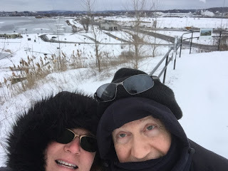 Standing in the cold, deep snow on the bridge,we could see the largest shopping mall in New York, Destiny USA.We could imagine the food, bathrooms and warmth inside,but kept trudging toward our goal, not wanting to be lead astray.