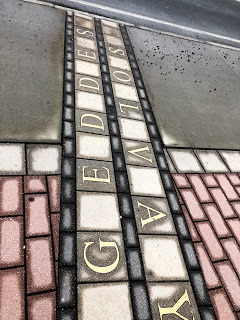 Several bathrooms, benches and restaurants can be found--enjoyed lunch at the funky Mello Velo Bicycle Shop & Cafe.Then walked through the center of Erie Boulevard,where we imagined barges floating by, as though it were yesterday.