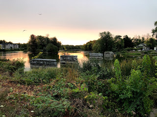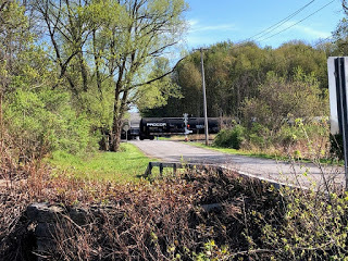 The Trail takes a left on Bridge Street then onto Tow Path Road--relief from the whizzing cars along Widewaters Pond.The Old Erie Canal could be seen again in East Syracuse,overgrown with little water, it is still a sight for which I've grown fond.