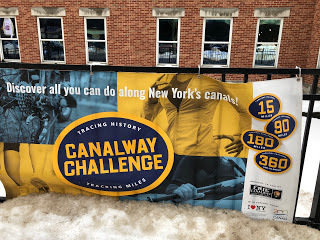 Our Challenge began on April 21, 2020, at its mid point--the Camillus Erie Canal Park, site of the restored Nine Mile Creek Aqueduct.You can see remains of Clinton’s Ditch,a replica of Sims' canal store, a house boat, artifacts and many signs--valuable to instruct.