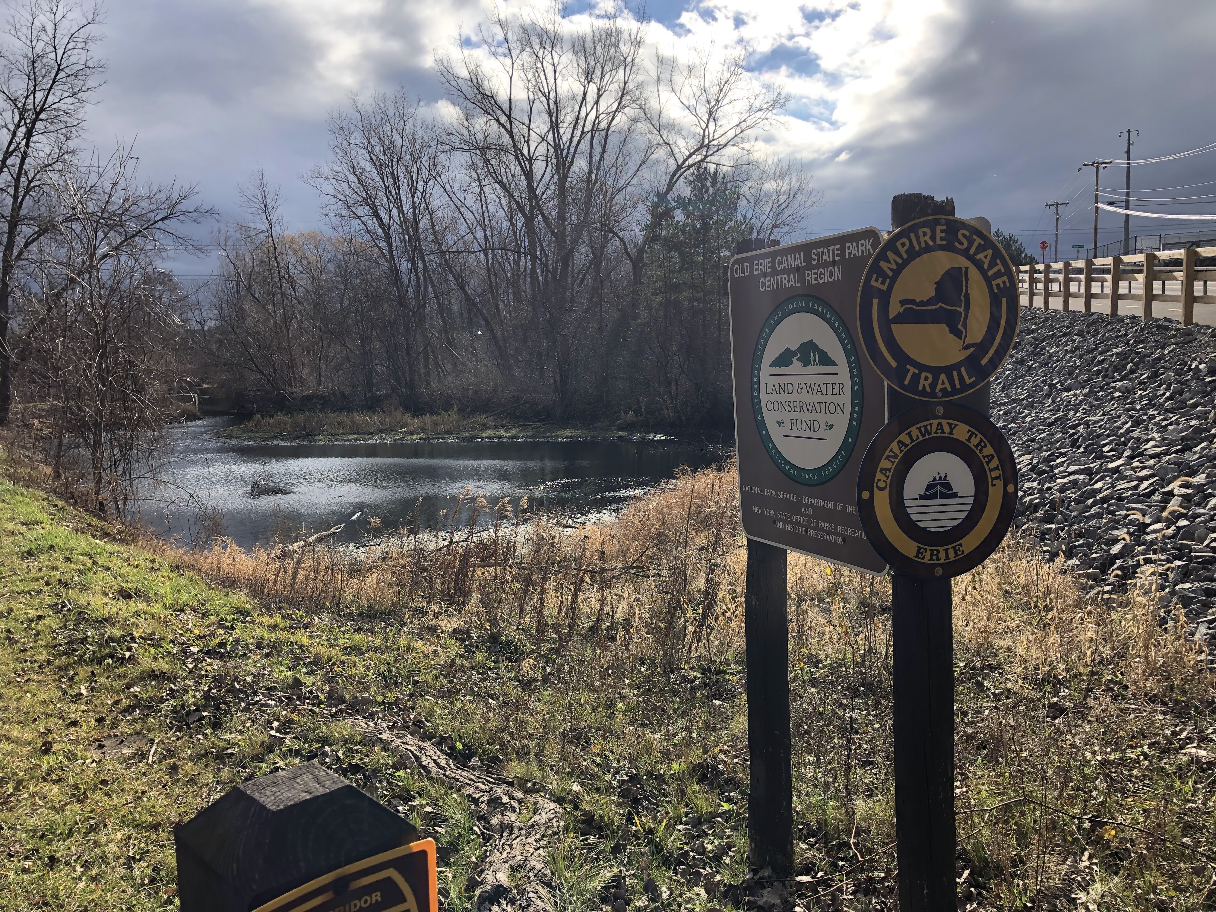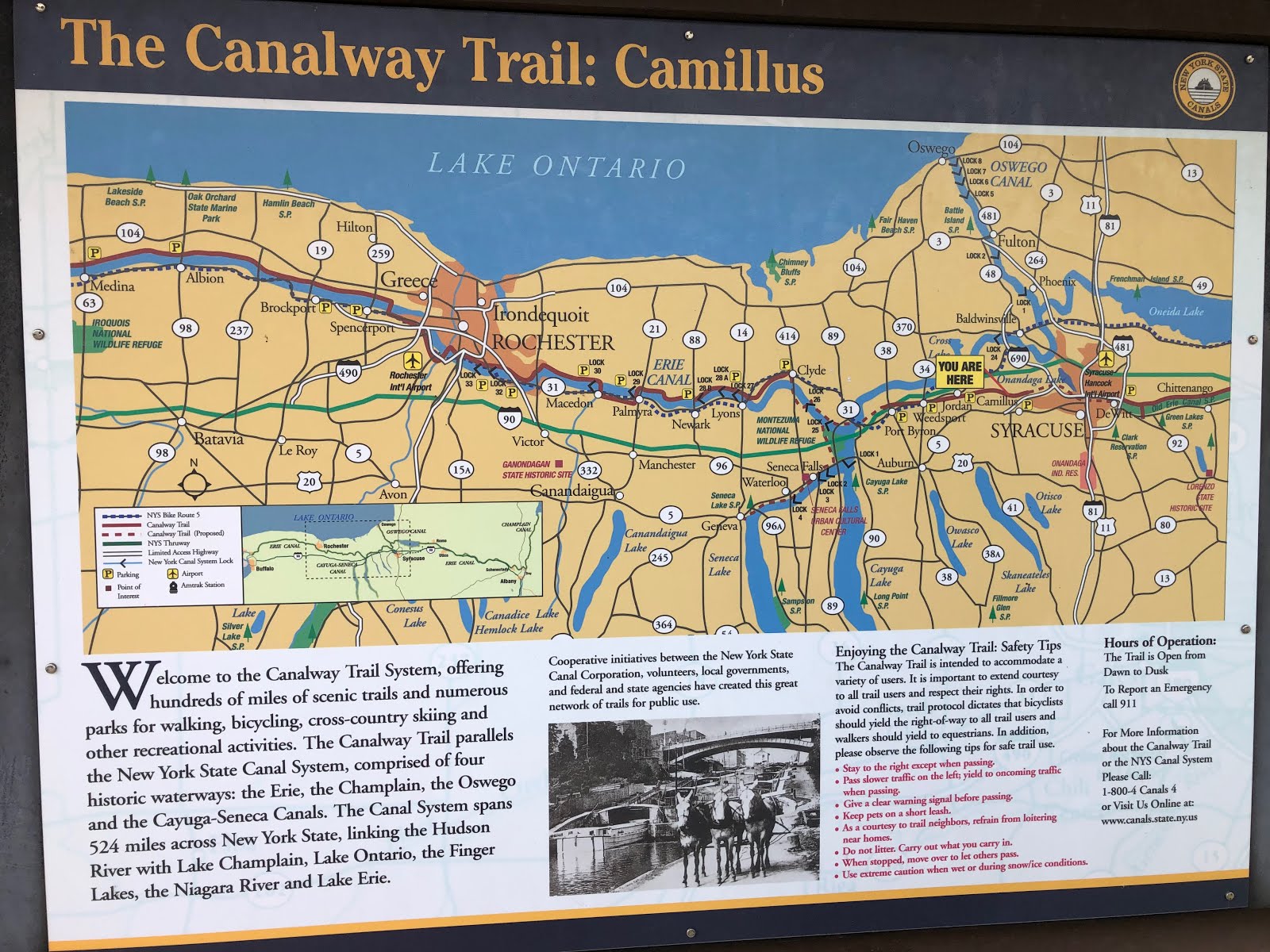According to NY's press release about the Empire State Trail, it is "the nation's longest multi-use state trail" and "spans 750-miles total, 75 percent of which is off-road trails ideal for cyclists, hikers, runners, cross-country skiers and snow-shoers. The new recreational trail, which runs from New York City through the Hudson and Champlain Valleys to Canada, and from Albany to Buffalo along the Erie Canal, will provide a safe and scenic pathway for New Yorkers...The Empire State Trail website provides quick and easy access to trail information including segment descriptions, access points, trail distances, parking areas, restrooms, and nearby amenities and attractions." Here is a map of the new part of the trail we are currently walking: https://empiretrail.ny.gov/rochester-syracuse/camillus-syracuse.
