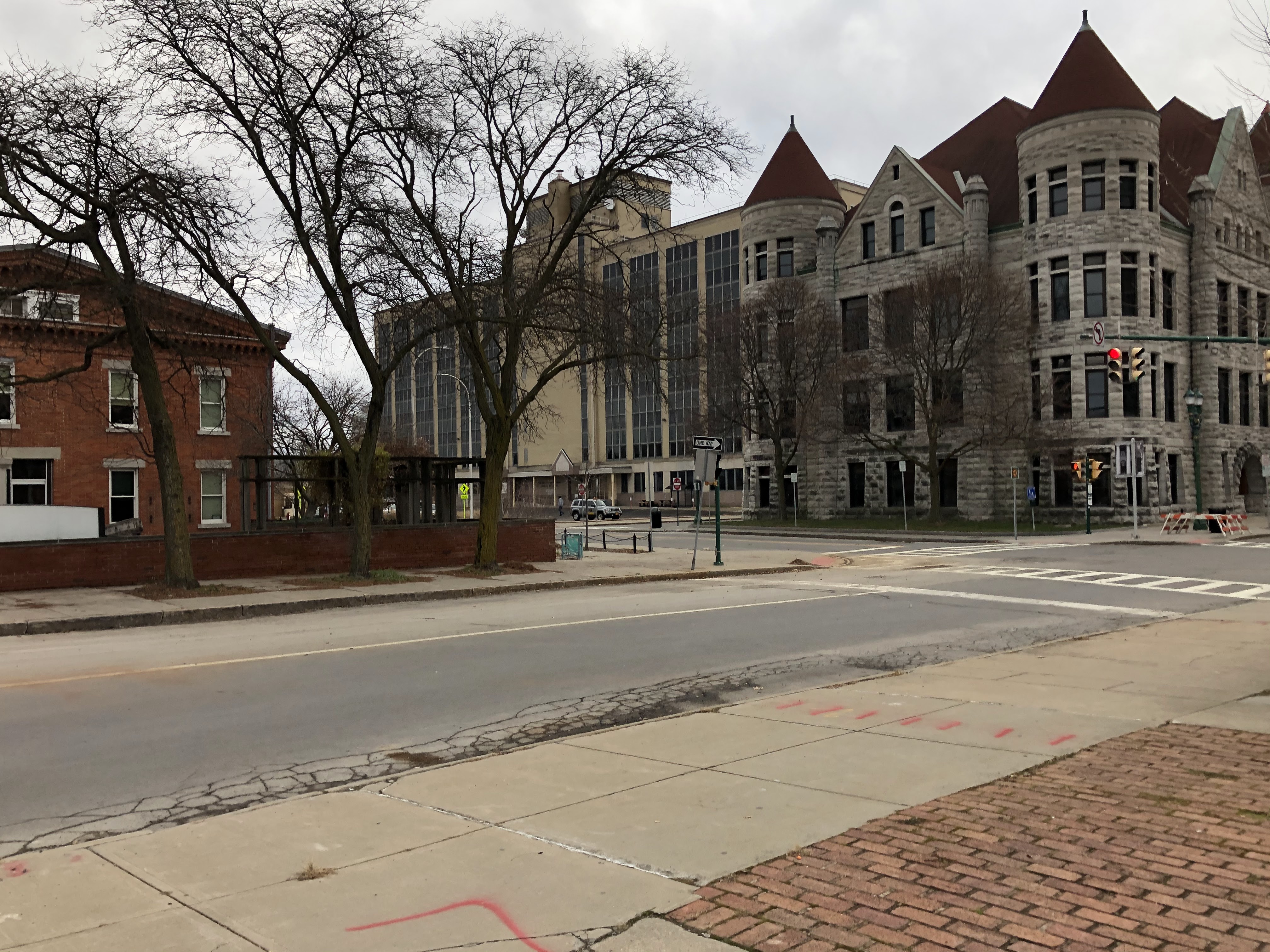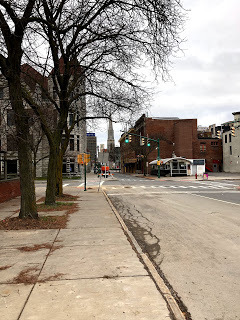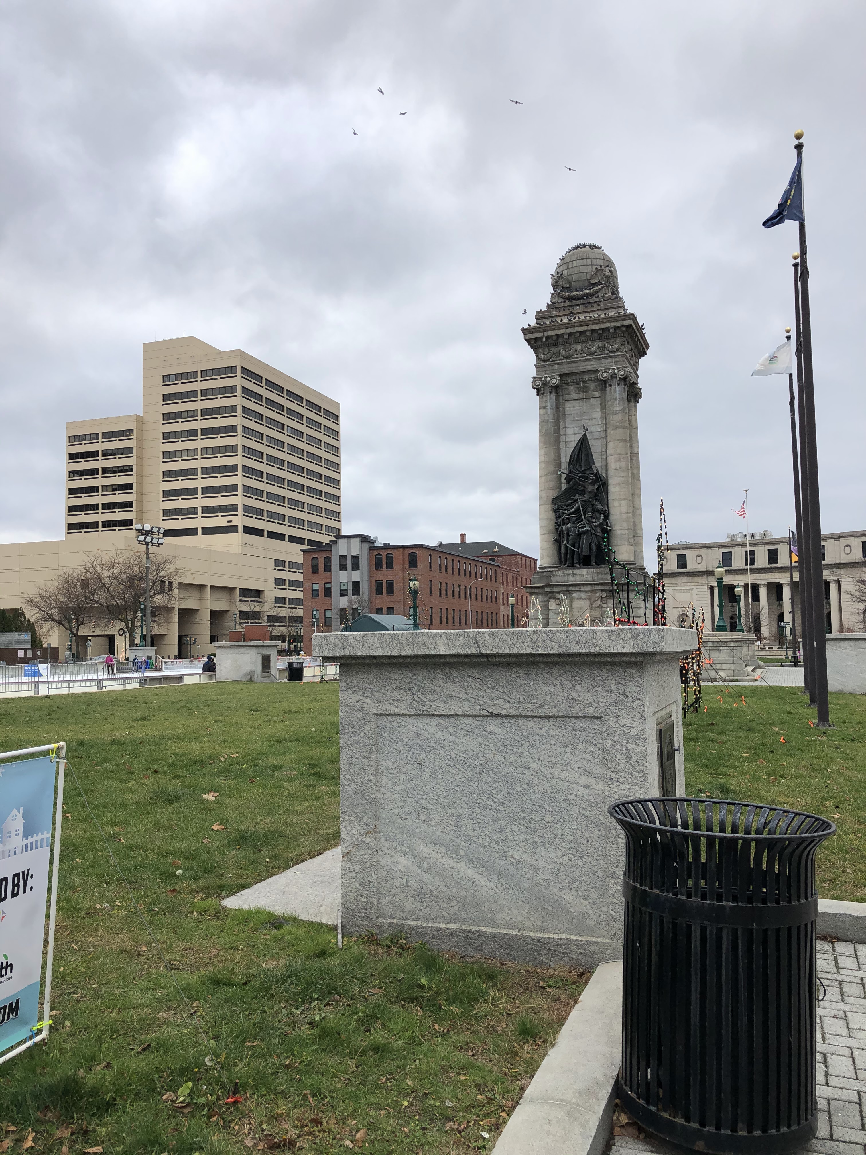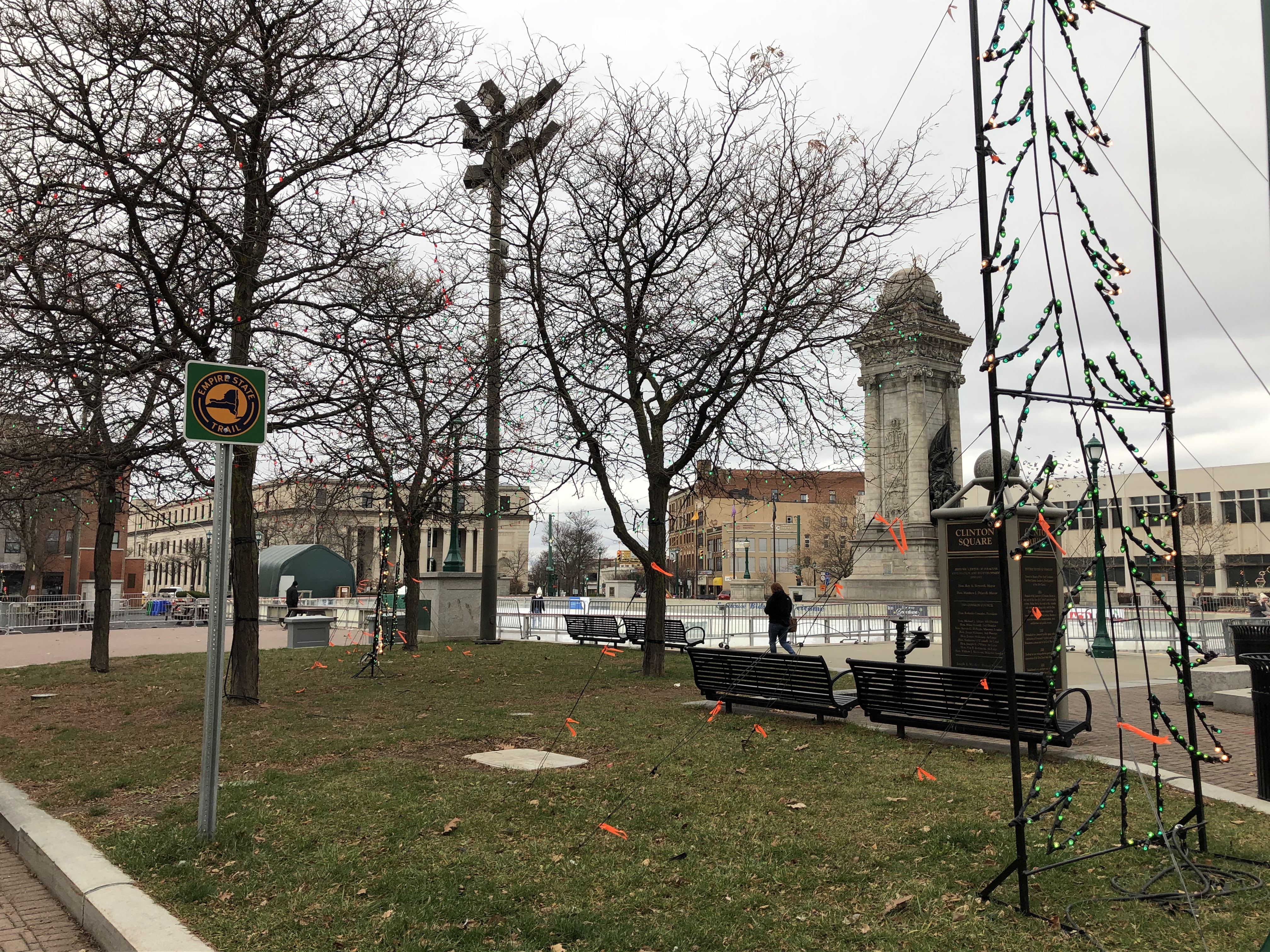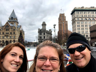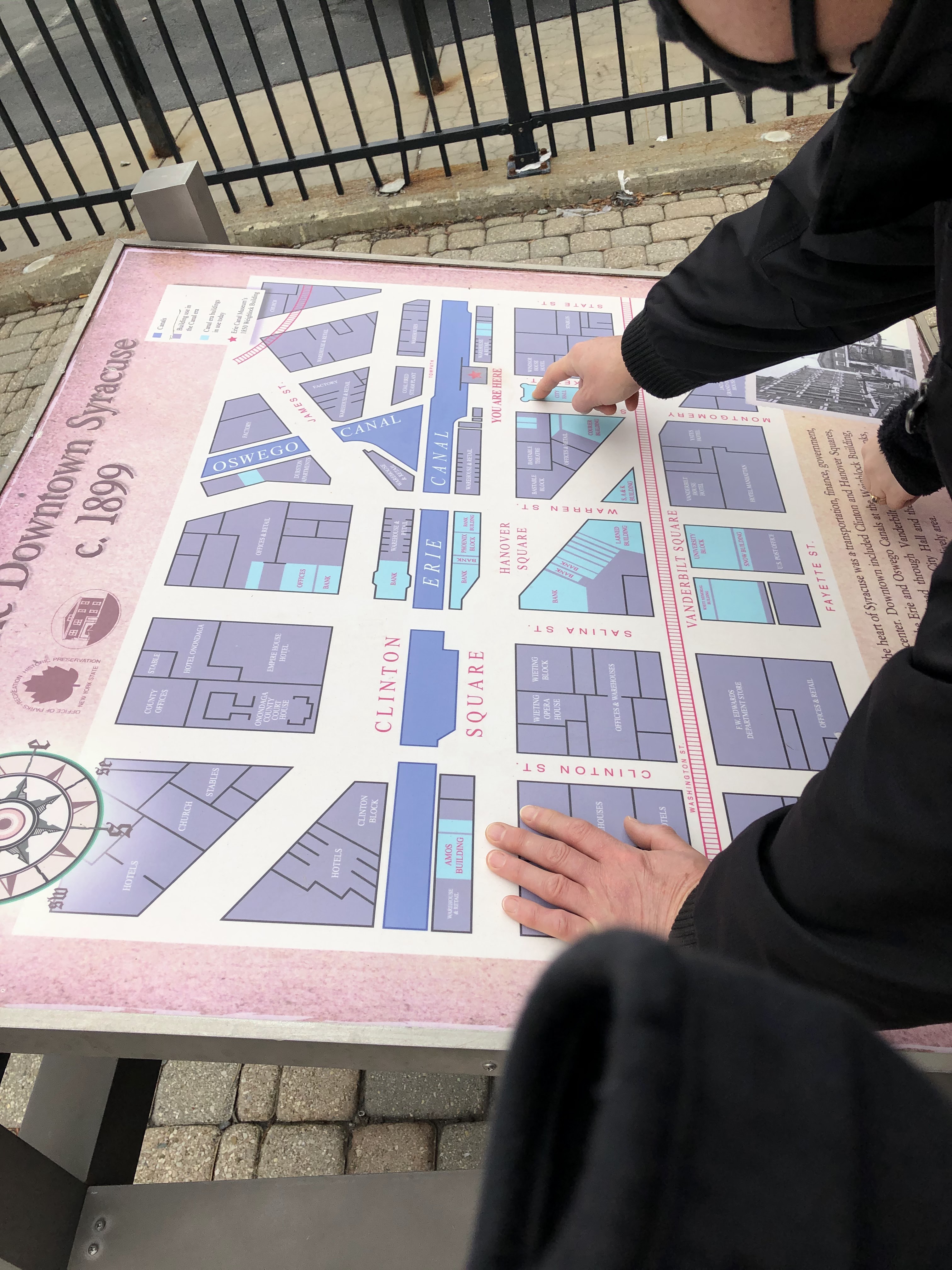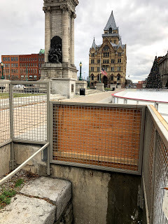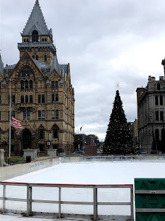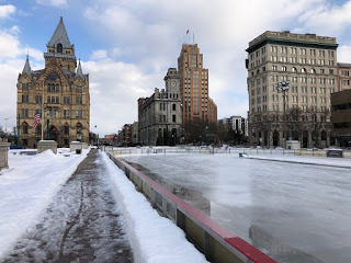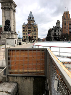 Waking the new Empire State Trail has made it so much easier for us to walk the Erie Canalway Trail in downtown Syracuse. Just moments before I shot this, yesterday's ice skaters looked just like those of yesteryear pictured on the plaque in Clinton's Square. So excited to see two remnants of the old Canal preserved on the Square.