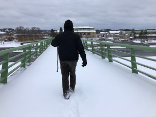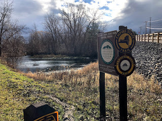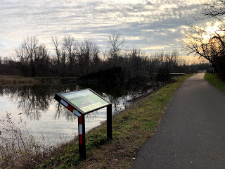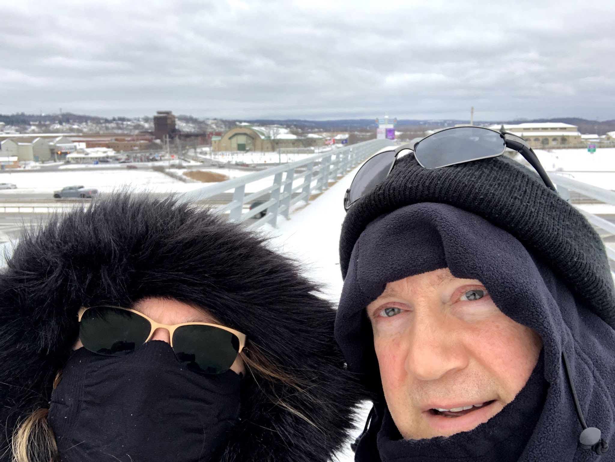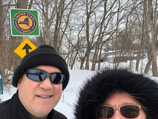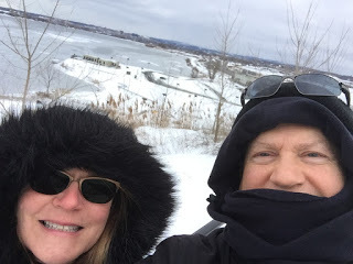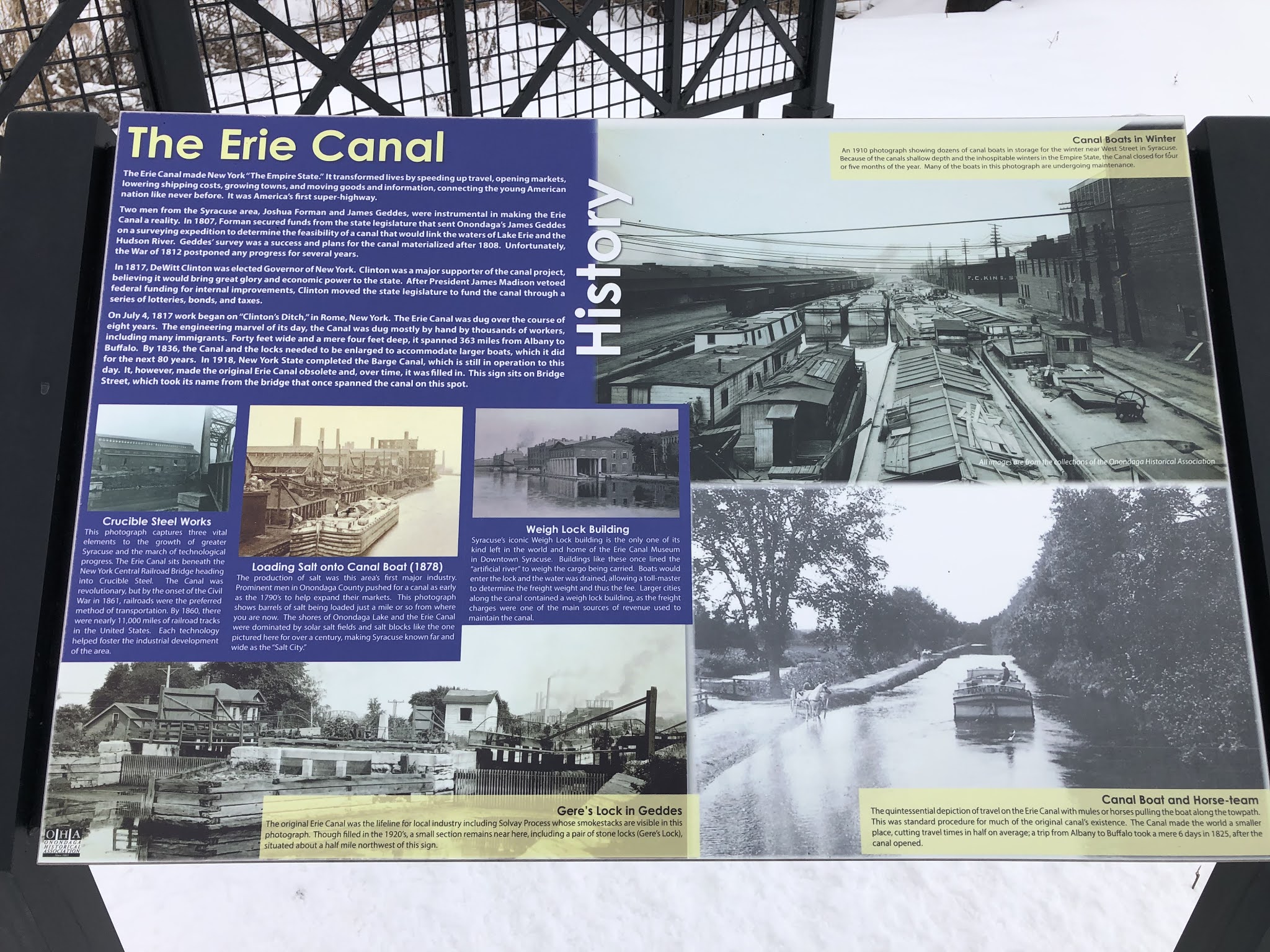 We strapped on ice cleats and grabbed a walking stick to help us trek through the cold, snow and ice on the newly constructed Empire State Trail (part of Erie Canalway Trail) near Onondaga Lake, or "Salt Lake" as it was once known for its salty brine springs around the southern end. Syracuse was a major producer of salt, which was shipped east and west along the Erie Canal. The Empire State/Erie Canalway Trails lead to New York State Fair Grounds.