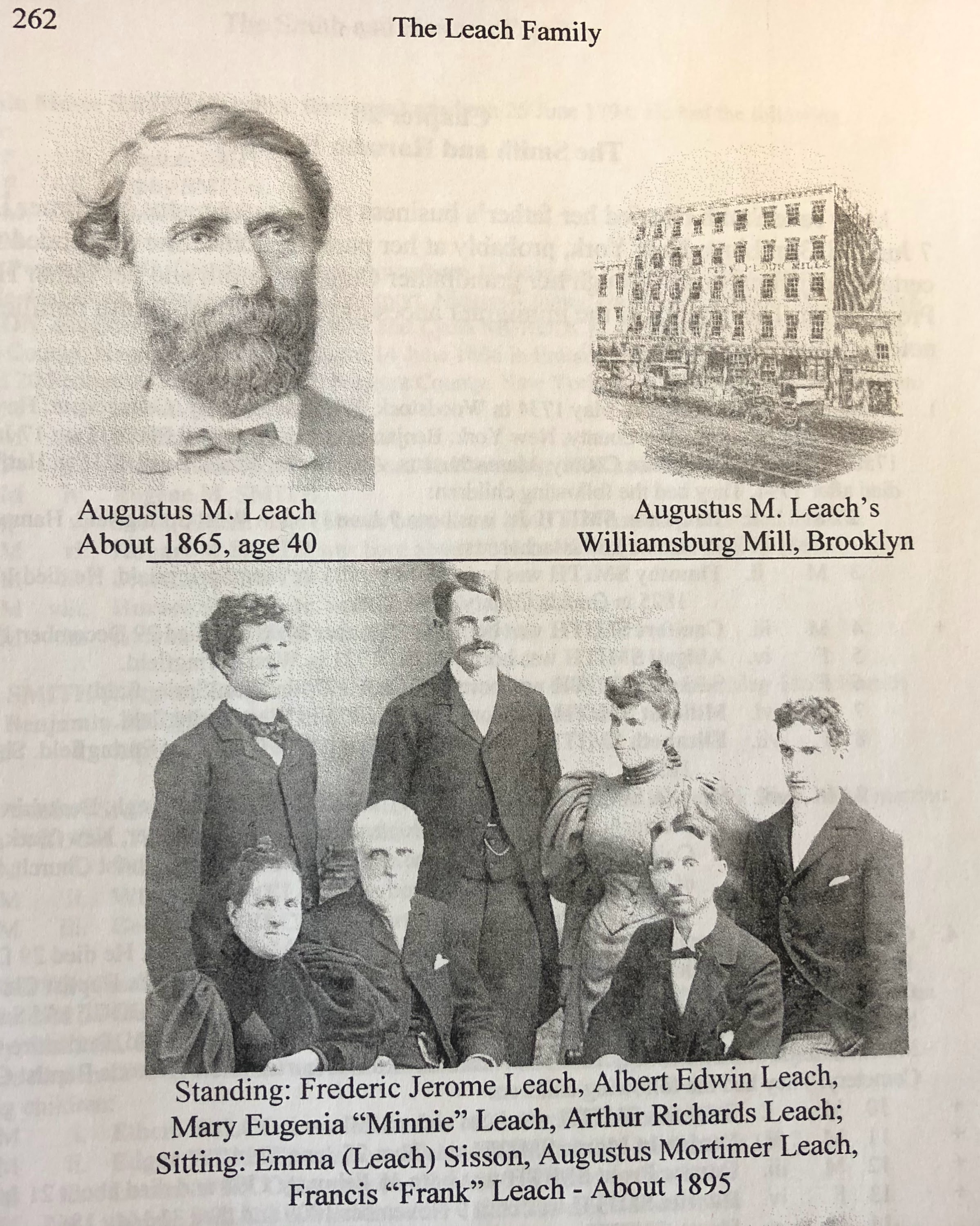 Leach photos and information found in book, "The Sisson Family of Lyons, New York", pages 234-243, published 2005 by David Arne Sisson. See: https://www.worldcat.org/title/sisson-family-of-lyons-new-york-elisha-1763-1844-and-elizabeth-chappel-sisson-1763-1826-their-son-william-sisson-1787-1863-and-some-of-their-ancestors-and-descendants-and-those-of-betsey-gale-sisson-1790-1847-harriet-arne-sisson-1825-1902-polly-munro-arne-1794-1878-emma-leach-sisson-1860-1930-with-some-new-clues-to-the-lives-of-williams-sisters-elizabeth-sisson-ellis-and-hannah-burdick-sisson-churchill/oclc/865847739
