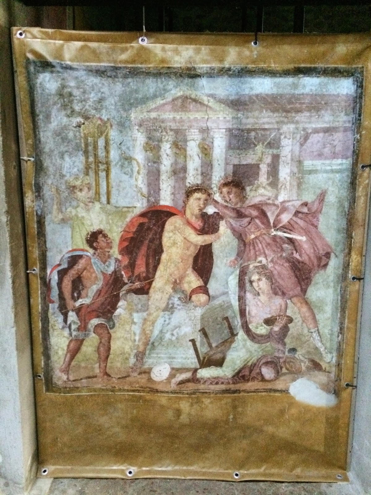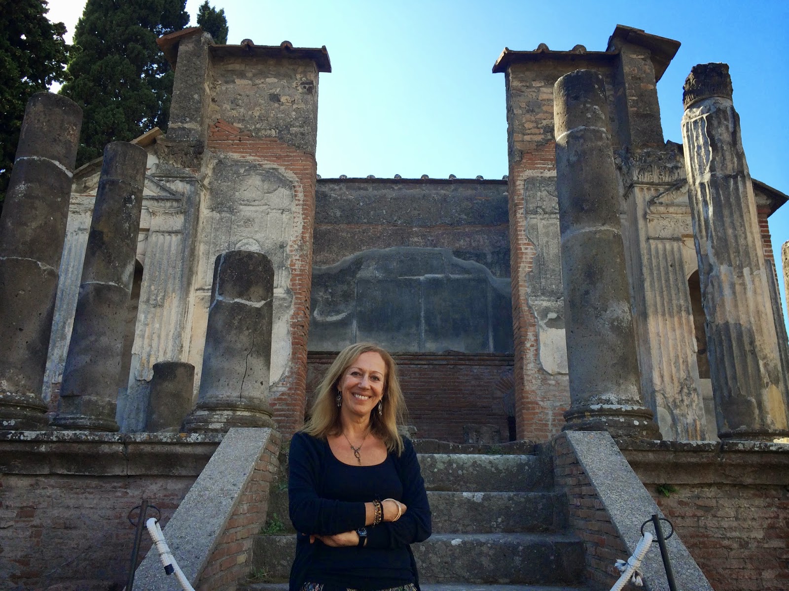 I stride over large lava blocks of the street & leap onto the high sidewalks as if I live here. I enter the villa of Marcus Lucretius Fronto—possibly the most beautiful house in Pompeii—with its frescoes as bright & vivid as if they were painted yesterday.