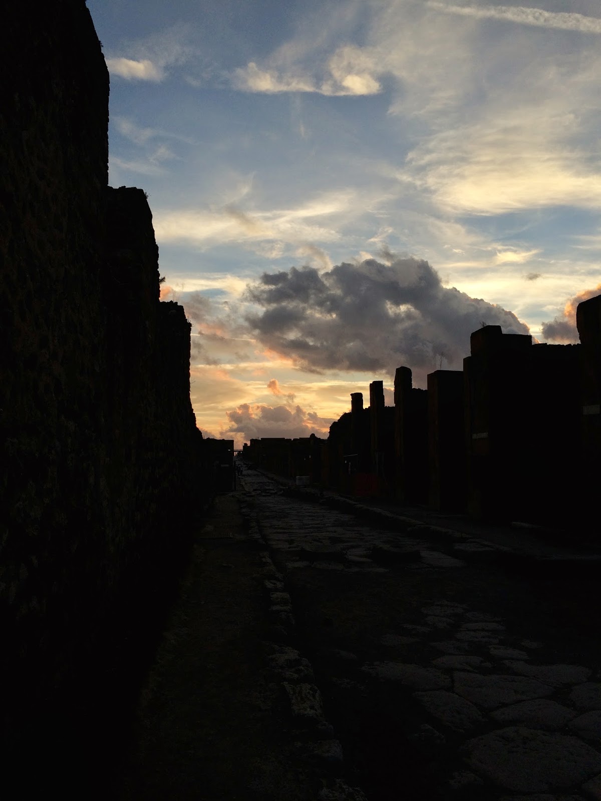 ... & to room after room of frescoes, statues, wall panels, & artifacts taken from the houses of Pompeii & Herculaneum, two cities destroyed by the eruption of Mount Vesuvius in 79 AD. Tomorrow I will go to Pompeii & wander the ancient city from one end to the other, moving in diagonals & half-moons like the Teatro, until the sky turns pink, an evening breeze blows, & only a handful of guards & tourists remain.