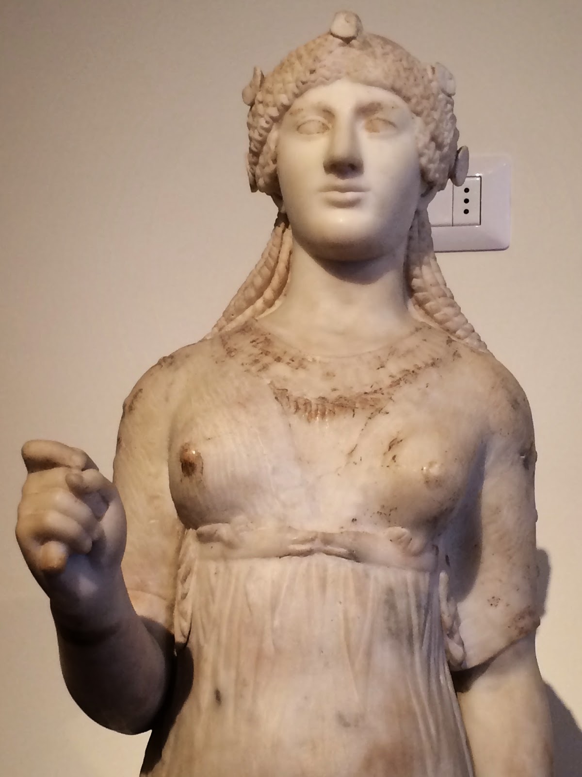 Back inside the museum to the ancient art, the richly decorated panels that adorned the houses of Pompeii. A couple sits on the floor & kisses in front of an enormous fresco. They are exactly right, I think, to respond to the pleasure Pompeii’s artists took in celebrating the body & erotic delight. Even my favorite statue of the goddess Isis is softly sensual & curved, utterly female in her power. Later, at her Temple in Pompeii, I will think about how the ancient world whispers to us when we live in its shadows. If we listen, we can learn so much—not only about how they lived, but about how we live … & how we can live better.