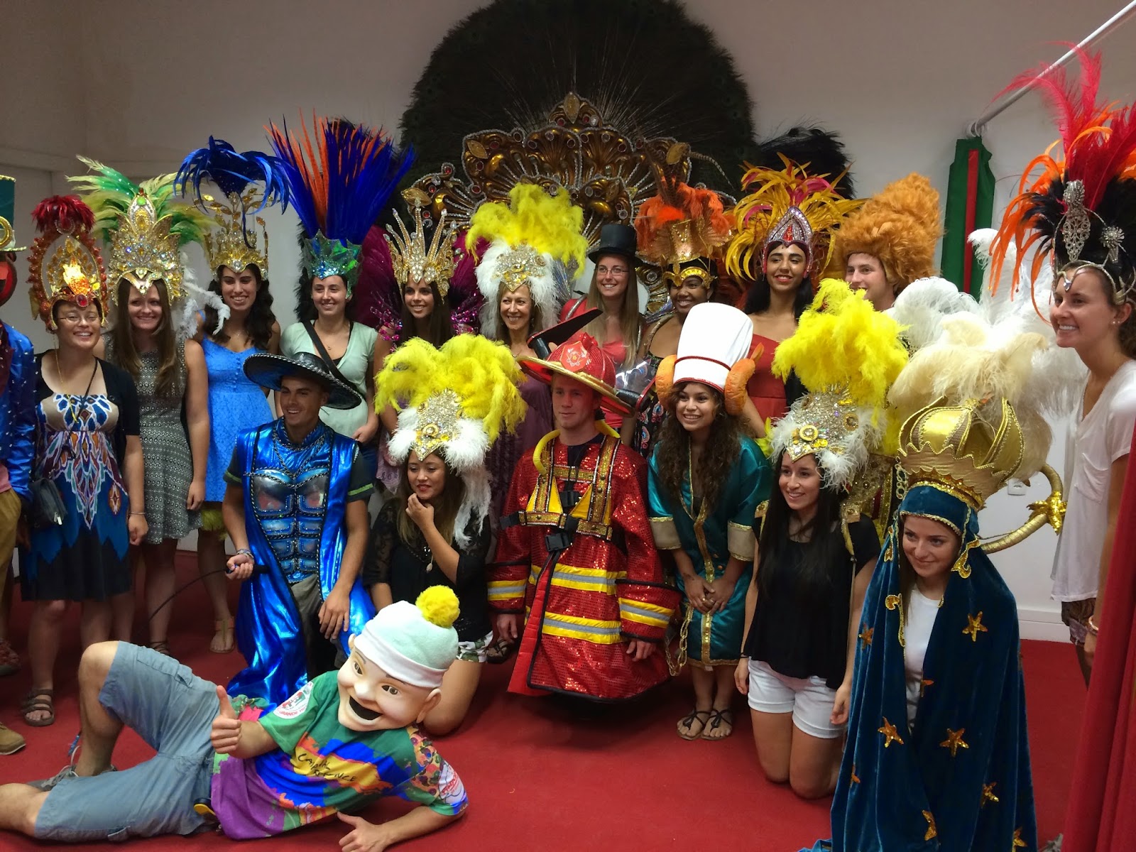 Earlier today I took my students to the Samba Warehouse, where Akiva Potasman took us for a lively percussion workshop and for a tour of his Samba School’s workshop—the lush wonder of costumes and floats in process as they prepare for next year’s Carnaval. The importance of samba & Carnaval is impossible to exaggerate in the lives of those involved—students rehearse 3 days a week, 4 hours at a time, and must find their transportation to and from the school space, often traveling an hour each way. There are about 5,000 students in each “school,” and there are 12 schools in Rio. They create, rehearse, work, dream, and prepare for the 2 days of Carnaval-- an opera under the stars, magical realism at its most intense. And only1 school will be lucky enough to win.