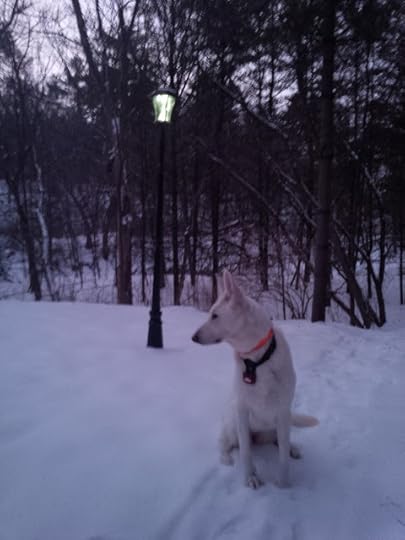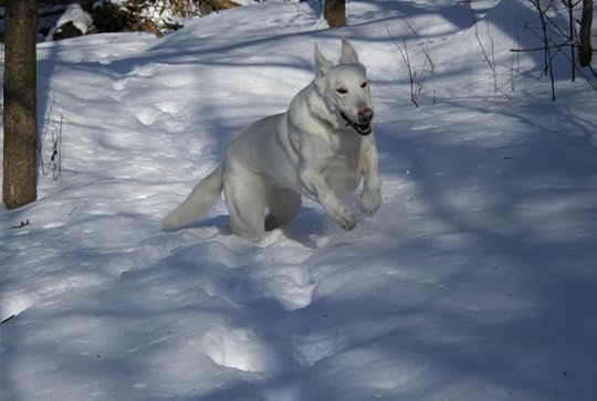 He'd been named Buck, in the farmyard, on the chain, but he didn't respond to it, and hadn't actually been called Buck by anyone, as far as I could tell. I called him Cabal, after King Arthur's white dog who could see the wind, and he seemed to like having a name he could respond to.