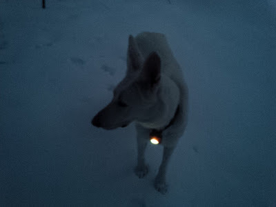 On the way home from the recording, driving through the rain, just as I pulled off the freeway to head home, I saw a large, pale dog on the side of the sliproad. I went in a couple of seconds from a first glance thought of "Oh, he's just wandering around and knows exactly what he's doing," to, on a second glance, "He's absolutely terrified and if he isn't actually lost he's really scared of all the cars and in danger of bolting onto the freeway," .