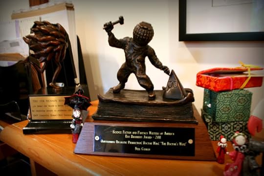 I flew home this morning. I put the award above the desk beside my Jim Henson Creativity award, and surrounded it with poppets...