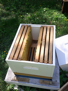 I prepared an empty hive. I put a couple of frames of honey into it from a hive that could afford to lost them.