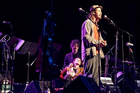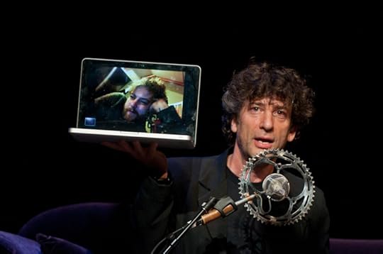 There is a love story there, and it starts with a look of genuine happiness on Jason Webley's face, as he looks up into the light, sharing his joy with (and for) the audience. Amanda Palmer represents that audience to me, relaxed, attentive and having a good time, and Neil Gaiman ties the story together, looking down at his wife with complete adoration and a smile that says simply: "I Love You."