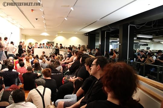 I had a marvellous time with the FourPlay String Quartet in Sydney a few days ago. Flew home and went straight to the Melbourne City Library where Amanda and I read (me) and sang (her). We'd announced that we'd be there on Twitter just before my plane took off, and about four hundred people showed up.