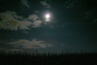 There's a storm coming, with a cool breeze blowing across the warm evening, and the cornfield is alive with rustles and whispers. The white dogs in the moonlight slip in and out of the corn like ghosts, and I cannot stop my head building nightmarish scenarios no matter how hard I try.