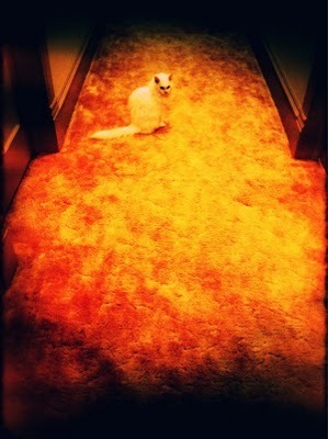 Actually, I should clarify. The above things are what Kyle is officially here to shoot. Unofficially, he's here for the cats. This is his iphone picture of Princess looking like the Cat of Doom from a horror movie.