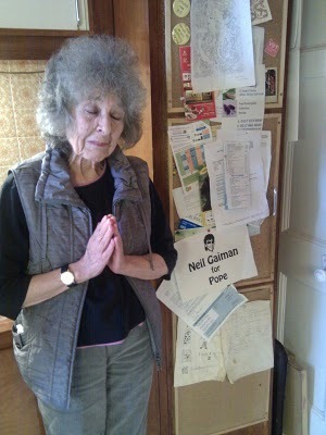 She adopted me when I was a 24 year old writer for magazines of dubious respectability, and spent the next 25 years being proud of me as I made art that she liked (and, sometimes, I didn't. She'd tell me what she thought, and her opinions and criticism were brilliant and precise and honest, and if she said "Yee-ees. I thought you made a bit of a mess of that one," then I probably had, so when she really liked something it meant the world to me).