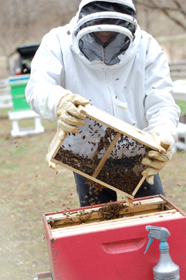 To learn about what happened on Tuesday, when both the snow and the Russian Bees who needed hiving arrived at the same time, you should read Sharon Stiteler's blog at http://www.birdchick.com/wp/2011/04/russian-bee-installation/. I got stung twice (mostly I think because the bees were cold and landed on me for warmth, and my hands were too cold to feel them, so I'd move and they'd be crushed) but simply put on gloves and carried on, and the stings were both gone later than afternoon, which may mean that Russian stings are not as painful as Italian stings.