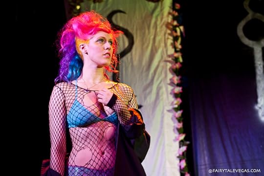 I love what Sarah does, especially as a writer who has quite often had dozens of characters running around in my head at the same time. The ones I always liked were the ones who did the most work themselves. (I always loved Delirium, for example, because I only ever had to give her a straight line, and then shut up and listen.) Sarah's got a bunch of characters running around in her head, and she can hand over the body to them and see what they do. Some of her material is scripted, but a lot of it, the best stuff, was seat-of-her-pants stuff, answering questions for the audience, and interviewing me.